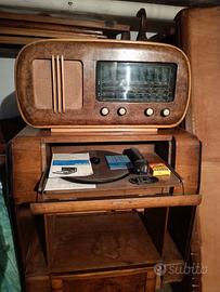 Gira dischi e radio in legno d'epoca.