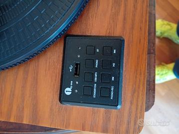 Giradischi 1byone 471DE con struttura in legno e due altoparlanti integrati e bluetooth per ascoltare musica da altri duspositivi in ottimo stato
