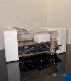 Il prodotto è stato solo aperto per controllarne il contenuto, ma non è mai stato usato. Perfetto per chi ama il suono caldo dei vinili e vuole un giradischi dal design elegante e retrò.