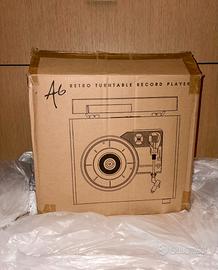 Vendo giradischi AG Retro Turntable Record Player colore grigio, mai utilizzato e ancora nella confezione originale con tutte le protezioni e gli accessori inclusi.