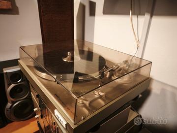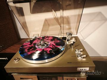 Akai AP100C Con testina Sanyo nuova Vendo giradischi akai ap 100c.... .... Bel piatto prodotto in Giappone dal 1978.... Di dimensioni è peso importanti... Siamo quasi a 7 chili.....no plastica ma derivato del legno Questo....e te lo dico da collezionista, e un gran bel pezzo... Trazione a cinghia (nuova )... Semi automatico a fine disco il braccio torna indietro...Bellissimo il braccio lungo a S ... Ben equilibrato.. Di derivazione jelco ... La testina è una Sanyo con stilo nuovo da rodare Cappa presente bella lucida senza graffi molto evidenti perfettamente funzionante Disponibile altro nero a 120 euro con cappa da rivedere Posso spedire dopo video dimostrativo oppure vieni ad ascoltarlo a casa mia Priorità consegna a mano che secondo me è la cosa migliore Gli altri apparecchi se visibili in foto ( giradischi amplificatore registratore a cassette lettore cd equalizzatore bobine casse ecc) non sono in vendita a meno che non lo trovi nei miei annunci. Clamp stabilizzatore non compreso