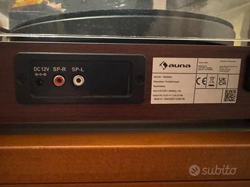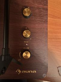 Vendo bellissimo giradischi Auna, come nuovo Tre velocità di ascolto(33-45-78 giri) Attacchi posteriore rca per casse Peso del braccio regolabile per un ascolto di qualità Tappetino dedicato sul piatto Comprese due casse che offrono un’ottima potenza e qualità di ascolto Alimentatore da parete Oggetto non molto ingombrante, si puo posizionare tranquillamente in uno scaffale o in una libreria Per qualsiasi informazione contattatatemi