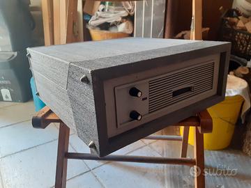 Giradischi a forma di valigia della azienda italiana TESA....non sono capace di testarlo,ci sono delle striscette in plastica per lareazione rovinate ,la puntina non c'è.