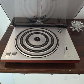In vendita un bell'esemplare del giradischi automatico di casa bang & olufsen, costruito dal 1979 al 1982. Il giradischi è automatico, basta posare il disco sul piatto e premere il tasto della velocità e la puntina si dispone sul primo solco. Le condizioni estetiche sono ottime, il coperchio è integro, le superfici di alluminio sono perfette, prive di graffi. Il piatto è perfetto. Le cornici di essenza di legno hanno qualche imperfezione, ma sono integre. Completa il tutto la testina MMC20 EN che da sola vale 180 euro. Possibile la spedizione con imballo adeguato. Vendita tra privati, senza garanzia e sostituzione