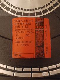 Giradischi BSR, trazione ad ingranaggio (no cinghia), in perfette condizioni esterne, ma non funzionante (collegato alla 220, il motorino scalda, ma non fa girare il piatto).