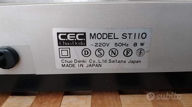 Giradischi in ottime condizioni, perfettamente funzionante. Modello ST110 marca C.E.C. Il prezzo non è trattabile.