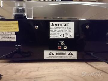 Giradischi 33/45/78 giri Hi-Fi stereo Majestic modello TT38CD, con radio, lettore CD/MP3 e musicassette, entrata USB.
