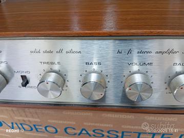 vendo Giradischi con amplificatore Augusta anni '70 modello BSR P128 Amplificatore Augusta omaggio cuffie originali