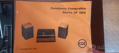 Regalo giradischi vintage CGE CF 1012 con amplificatore interno e casse danneggiato (non si accende) a qualcuno che vuole ripararlo o ricavarne pezzi di ricambio.