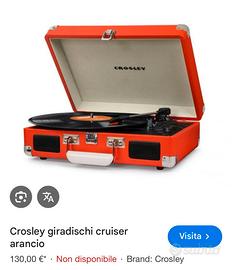 Vendesi giradischi Crosley Cruiser Deluxe, ancora imballato e mai utilizzato. Colore arancio. Astenersi perditempo.