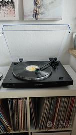 Giradischi automatico con connettività wireless Bluetooth, ideale per vinili 33/45 rpm. Colore nero, design compatto, perfetto per setup audio domestico.