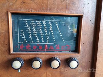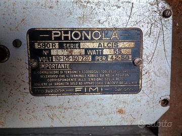 Giradischi e radio d'epoca PHONOLA modello Alcis su mobiletto in legno. Misure L 54cm, P 40cm, H 91cm.