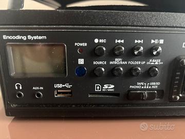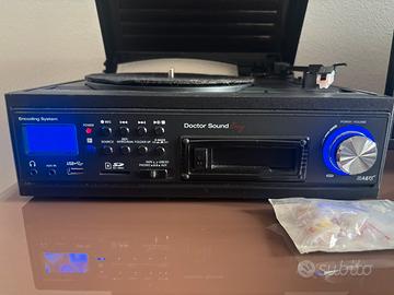 Giradischi 33/45 giri audio integrato funzionante e in buone condizioni. Presente anche funzione per musicassette (mai usata), aux, usb e sd. Presenti alcune puntine di ricambio. Modello doctor sound easy Ritiro a mano zona Firenze sud (o da concordare)