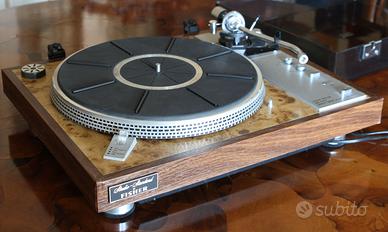 Esemplare raro. Il giradischi Fisher MT 6225 utilizza un sistema di azionamento a motore lineare davvero unico; non c'è né cinghia né trasmissione diretta nel senso convenzionale perché il corpo dello stesso giradischi è il rotore del motore, come, per similitudine, il treno a levitazione magnetica. Insomma le caratteristiche straordinarie di questo esclusivo sistema di azionamento sono: 1) il piatto girevole è il rotore del motore, 2) non ci sono collegamenti elettrici al rotore, 3) il rotore non ha avvolgimenti di armatura e tutti i complicati circuiti elettronici sono in posizione stazionaria (non mobile) su una singola scheda PC montata sulla base del giradischi e dunque il mandrino/spindle è libero perché la spinta per la rotazione è magnetica. I vantaggi di tale trasmissione rispetto alle tradizionali sono principalmente: •Assoluta semplicità circuitale con piccola scheda poggiata sul fondo •Assenza del motore vibrante e della relativa circuitazione •Nessun contatto elettrico con il "rotore" del motore che in questo caso è il piatto tesso. •Assenza di avvolgimenti intorno al "rotore" (sempre il piatto di cui sopra) •Assenza di rumore di fondo dovuta alla trasmissione •Stabilità di funzionamento a lungo termine senza necessità di manutenzione •Soglia rumore che raggiunge l'eccellente valore di 70dB •Sincronismo e Stabilità rotazionale che raggiunge lo 0,025% Telaio rigido, su piedi ammortizzanti Piastra con effetto Radica Noce Design Classico molto raffinato Estremamente Musicale! Ritorno fine corsa Automatico Partenza del piatto Semi-Auto; avviene spostando il Braccio verso il disco ma anche con pulsante dedicato, come al rigo successivo Partenza Automatica da Pulsante con appoggio primo solco 33/45 giri N/R Rumble bassissimo 70dB !! Connessioni RCA e Massa su Chassis con ottimi Chick Dorati e isolati in Teflon Condizioni Estetiche: Microscopiche alterazioni dell'impiallacciatura sui due spigoli anteriori Condizioni Tecniche perfette.