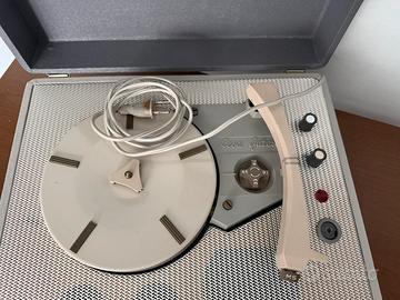 vendo giradischi fonovaligia Silem-Lesa anni 60 per sentire dischi 33/45 giri e 16/78 giri, bel colore grigio/bianco, condizioni ottime e perfettamente funzionante in quanto revisionato da poco. Faccio notare che la puntina per i dischi 78 giri è da sostituire. Si sente molto bene! Su rischiesta posso inviare video in funzione. Prezzo 85 euro