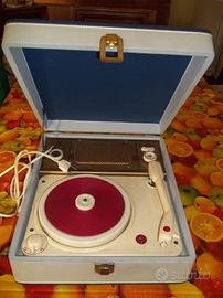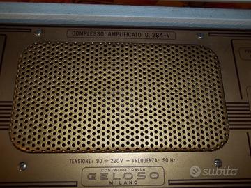 Fonovaligia alimentata a rete, valvolare amplificata 3 Watt circa, piatto giradischi con 4 velocità 16/33/45/78, testina piezoelettrica Ronette mono, produzione primi anni 60, marca Geloso, FUNZIONANTE