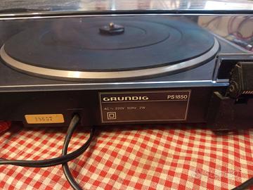 Giradischi Grundig PS 1850 funzionante. È completo di testina puntina e coperchio. Funziona collegato ad un amplificatore. Testina e puntina sono funzionanti e suona bene. È un bel giradischi. Funziona per dischi a 33 e 45 giri. Ha il ritorno automatico. Esteticamente è messo abbastanza bene, ha qualche graffio.