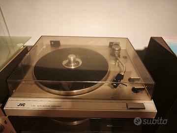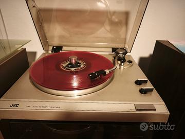 JVC L-A11 – Semiautomatico – Condizioni Eccellenti Se cerchi un giradischi solido, affidabile e pronto all'uso ma dal prezzo contenuto... questo JVC L-A11 è la scelta ideale. Si tratta di un modello a trazione a cinghia con ritorno automatico a fine disco, perfetto per chi cerca un suono analogico pulito senza complicazioni eccessive... esemplare In condizioni splendide... Il telaio è stato curato con attenzione, non presenta graffi profondi o segni di usura rilevanti. Un pezzo che fa ancora la sua figura su qualsiasi mobile hi-fi. Il funzionamento è impeccabile in ogni sua parte (velocità stabile e meccanismo di ritorno fluido). Monta la sua testina originale JVC equipaggiata con uno stilo (puntina) nuovo appena installato, ancora da rodare per le prime 10-20 ore di ascolto. L'unico dettaglio da segnalare è coperchio che e in brutte condizioni e il prezzo tiene conto di ciò Caratteristiche principali: Trazione a cinghia (belt drive). Braccio a "S" bilanciato per un tracciamento preciso Ritorno automatico del braccio a fine corsa. Un giradischi concreto pronto a far girare i tuoi vinili con la qualità costruttiva tipica della meccanica giapponese. Posso spedire dopo video dimostrativo oppure vieni ad ascoltarlo a casa mia Gli altri apparecchi se visibili in foto ( giradischi amplificatore registratore a cassette equalizzatore bobine casse l ecc) non sono in vendita a meno che non lo trovi nei miei annunci Clamp stabilizzatore non compreso