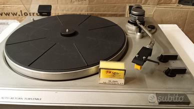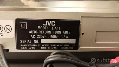 Vendo per inutilizzo giradischi JVC mod. L-A11 in ottime condizioni, made Japan. Manutenzionato, sostituito cinghia di trazione piatto e sostituito puntina. Il braccio è servoassistito con posteggio automatico a fine disco. Ha due velocità 33 e 45 giri. La testina è magnetodinamica, necessita di preamplificatore. Connettori RCA. Il coperchio in plexiglas è sulle cerniere, autoreggente e non presenta crepe. Eventuali altre info via e-mail o WhatsApp.