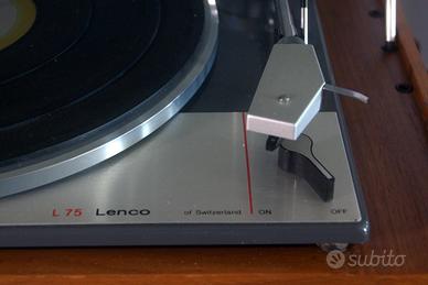 Vendo un bellissimo giradischi d'epoca anzi, IL GIRADISCHI... Si tratta di un LENCO L75 originale svizzero dei primi anni '70 in condizioni da vetrina, tutto originale compreso il basamento in legno e la cappa in plexiglas. E' stato appena pulito, lubrificato, regolato e funziona in modo impeccabile, chi lo conosce sa di cosa si tratta, se qualcuno non lo conosce lo invito a cercare in rete le info relative. Attenzione, cercate LENCO L75, se trovate L75/S lasciate perdere, è un modello seguente, meno nobile, fatto in Italia. Ovviamente è visibile a Gaggiano su appuntamento. Non spedisco (pesa 8,5Kg, solo il piatto fa 4Kg) ed è molto delicato. Il Giradischi è venduto SENZA cartuccia però ho una Ortofon che posso fornire a un prezzo ragionevole. Se desiderate altre informazioni o qualche foto in particolare chiedete pure.