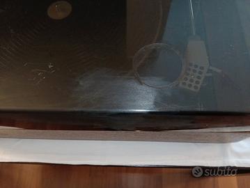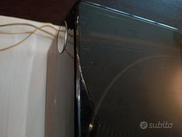 la cappa presenta delle opacità e una crepa nella zona angolo sinistro vicino alla cerniera che non ne pregiudica la funzionalità.