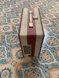 tipico degli anni '60 o '70, che si presenta in un design a valigetta