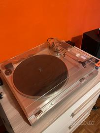 Vendo giradischi JVC L-A21 Cinghia nuova + testina e puntina nuova Technical Data Drive: Belt drive Motor: Synchronous motor Speed: 33 1/3 rpm, 45 rpm Synchronous speed: < 0,08% WRMS Rumpelgeräuschabstand: >63 dB (DIN-B) Turntable: 300 mm die-cast aluminium alloy Operating mode: Semi-automatic with tonearm feedback