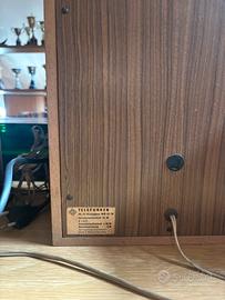 Giradischi originale Telefunken, icona dell’elettronica tedesca, caratterizzato da linee pulite e design tipico degli anni ’60/’70. Struttura con base in legno e copertura antipolvere in plexiglass fumé verde con logo frontale originale. Estetica raffinata e minimale, perfetta sia per ambienti vintage sia per contesti contemporanei con richiami retro. Piatto e componentistica originali. Ideale per appassionati di vinile e collezionisti del marchio Telefunken. Buone condizioni estetiche generali, con normali segni del tempo coerenti con l’età dell’oggetto. Oggetto di qualità costruttiva solida, perfetto come elemento funzionale e decorativo.