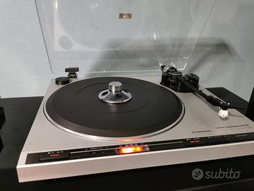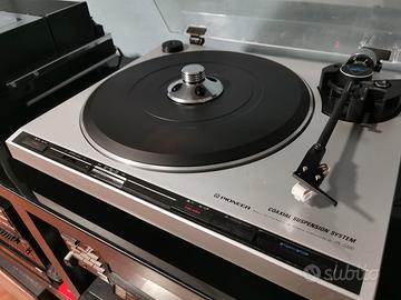 Pioneer pl 2200 Causa esubero vendo parte della mia collezione di elettroniche... Pioneer pl 2200... Giradischi prodotto a inizi anni 80.... Trazione a cinghia che è nuova....controllo stroboscopico fine dei giri.. . e un piatto completamente automatico.. Te premi il tasto e fa tutto da solo oppure lo puoi usare in manuale ed a fine disco il braccio torna indietro... Una delle caratteristiche distintive di questo modello è il braccio dritto realizzato in grafite polimerica. Perché è importante? Questo materiale è leggero ma estremamente rigido e possiede eccellenti proprietà di smorzamento delle vibrazioni interne.... È un braccio a massa medio-bassa, il che lo rende perfetto per testine moderne ad alta cedevolezza.. Viene dato completo di testina audiotechnica con stilo nuovo compatibile... Quindi il piatto e pronto per lavorare. Plex parapolvere presente Posso spedire dopo video dimostrativo oppure vieni ad ascoltarlo a casa mia Priorità consegna a mano Gli altri apparecchi se visibili in foto ( giradischi amplificatore mcintosh registratore a cassette lettore cd equalizzatore bobine casse ecc) non sono in vendita a meno che non lo trovi nei miei annunci Clamp stabilizzatore non compreso