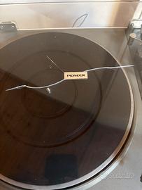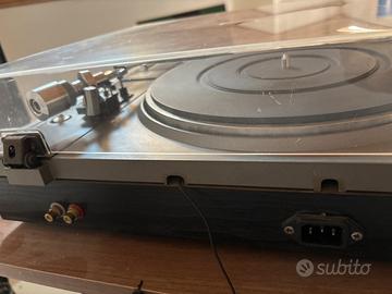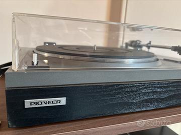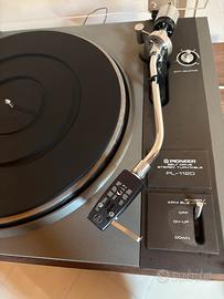 Vendo giradischi Pioneer PL112D in buone condizioni estetiche. Ha una crepa sul coperchio e una leggera scoloritura delle plastiche. Il classico rivestimento marrone del plinto si è rovinato e l’ho fatto sostituire con quello nero visibile in foto. Sono stati aggiunti anche connettori RCA e presa di alimentazione per maggiore praticità.
