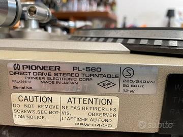 PL-560 in condizioni ottime usato poco vendo 550 Euro , con Libretto originale. Possibile abbinamento con Shure V15 Type IV 150 Euro, confezioni e libretti originali.