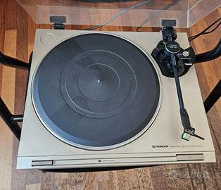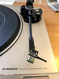 Giradischi Pioneer Quartz PLL PL-6. Il Pioneer PL-6 è un giradischi vintage a trazione diretta (Direct Drive) con controllo Quartz-PLL, noto per la sua stabilità di rotazione e funzionamento semi-automatico, con l'autoreturn. Ovviamente ha i segni di usura del tempo, ma è stato revisionato e ha la testina Shure BU 87 perfettamente funzionante.