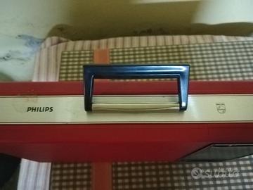 Giradischi portatile Philips vintage anni '70 a batteria e a cavo. Cassa alimentata ma piatto non gira più.