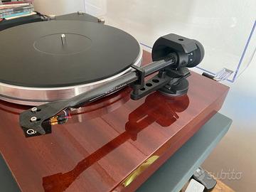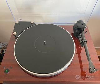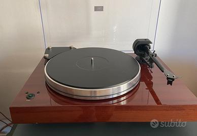 Ottimo giradischi a cinghia su telaio che poggia su piedini ammortizzati medie te magneti contrapposti.