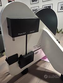 Modello dal design verticale/salvaspazio, elegante e moderno, ideale sia per l’ascolto analogico tradizionale sia per impianti più moderni.