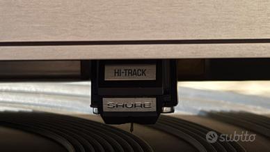 Giradischi tangenziale vintage REVOX b795 SOLO CONSEGNA A MANO ROMA e dintorni o PARMA e dintorni -presenta lievi segni usura -la copertura in plastica ha il supporto rotto ma si può rincollare mettendo un supporto in metallo -vendo con testina shure hi-track molto rara -adattatore 33 giri -prezzo poco trattabile Il Revox B795 colpisce per la trazione diretta controllata al quarzo e per il braccio tangenziale ultracorto (Linetrack). Questo elimina distorsioni e diafonia, mantenendo al contempo una riproduzione precisa. Il cabinet presenta una finitura di alta qualità ed è robusto; il braccio funziona in modo fluido e non richiede anti-skating. * Dimensioni: 449 x 142 x 395 mm; Peso: 9,1 kg * Giradischi: Ø 313 mm, 2,1 kg * Velocità: 33 1/3 / 45 giri/min * Azionamento: azionamento diretto controllato al quarzo * Impedenza di carico: 47 kOhm / 350 pF (220 pF nel cavo)