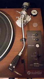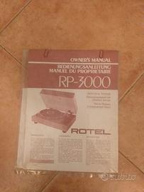 Giradischi Rotel RP-3000 a trazione diretta servocontrollato con luce stroboscopica e pitch control separati per 33 1/3 e 45 giri, con cappa originale e testina Shure mod. M95-ED in buone condizioni, usata poco perché ne possedevo un'altra, punte e sottopunte anti risonanza, in dotazione anche i piedini originali.