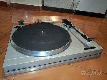 Giradischi vintage Sanyo Tp220 in perfetto stato. Piatto costruito bene, bel braccio con contrappeso e regolazione antiskating. Manutenzionato in tutto con cinghia e testina nuovi di zecca appena sostituiti. Suona parecchio bene. Testabile da me al ritiro anche con i vostri vinili. Ideale per ascoltare bene i cari vecchi vinili senza svenarsi pur non rinunciando alla qualità. Cortesemente no perditempo.