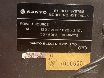 Giradischi Sanyo Electric Co. Hi-Fi Stereo System JXT-4404 fine anni 70 .