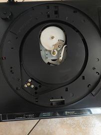 il giradischi in questione è praticamente nuovo, usato 2 volte, ma è fermo da 25 anni . Ho provato ad accenderlo, ma non gira, tolto il piatto in alluminio, si nota la