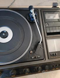 Il giradischi l'ho provato attaccando una cassa e vedo che funziona , nel senso che la cassetta prova a girarla e ogni tanto si blocca , il disco gira e si sente anche se non benissimo e così la radio .