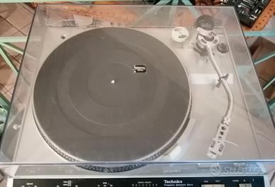 Giradischi in buone condizioni generali. Condizioni estetiche: Ottime per plinto, braccio e piatto Discrete per il coperchio in plexiglass: presenta una piccola mancanza (circa 5/6 mm) in uno dei rettangoli delle cerniere e una lieve lesione sul lato cerniera (vedi foto). Difetti puramente estetici che non compromettono l’apertura e chiusura. Cerniere perfettamente funzionanti. Condizioni funzionali: Funzionamento manuale Tasto cueing funzionante A volte il piatto necessita di una piccola spinta iniziale per partire Da revisionare: ritorno automatico funzione repeat (6 volte) pitch e controllo strobo dei giri Audio: Suono perfetto Monta testina e puntina nuove Audio-Technica AT3600L Shell e cinghia nuove 👉 Il giradischi, pur funzionando manualmente, viene venduto come da revisionare o per ricambi. 👉 Non si accettano reclami. Nota: garantisco imballo accurato ed eccellente.