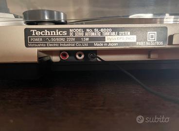 Piatto giradischi Technics sl-bd20. Perfettamente funzionante, trazione a cinghia, regolazione giri 33 e 45, completo di centraggio per 45 giri. Puntina originale Technics, completo di cappa (in ottimo stato), cavo di alimentazione e di massa.