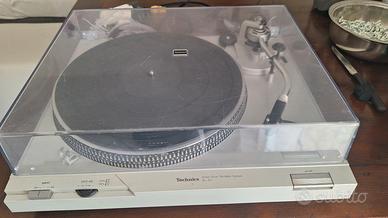 Giradischi in buone condizioni, trazione diretta, regolazione velocità stroboscopica. Suona molto bene per l'ottima testina che ho installato, AUDIOTECNICA AT-VM95E, seminuova e per i cavi di segnale professionali che ho sostituito personalmente rimuovendo quelli originali garantendo così il massimo dell'efficienza. Cavi che hanno 40 anni possono essere ossidati e il giradischi può suonare male. Tra testina e cavi ci sono già 100 euro di valore. Il coperchio è rovinato con dei fori e le cerniere non sono originali ma si apre e si chiude bene. Disponibile per qualsiasi prova, mi piacerebbe farvi sentire come suona bene ma posso anche spedire. 250 euro trattabili