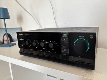 Amplificatore FA960, questo è l'amplificatore integrato più potente di Philips, top di gamma della serie. In condizioni perfette, è molto robusto circa 13 kg, pilota con disinvoltura qualsiasi diffusore anche con bassa efficienza. Attualmente collegato a delle sonus faber risulta essere un bel connubio. Sia l’uscita phono che cd direct baypassa i vari controlli di tono mantenendo il segnale puro.