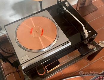 Vendo splendido sistema analogico composto da: - giradischi Technics SP-10 Mkll, con contropiatto in rame da 7 mm di spessore e tappetino; - plinto in multistrato, dim. cm 60 x 43 x 10, finitura “Piano Black gloss”, comprese due basette supplementari da forare per altri bracci; - braccio Ortofon RS-309D a bilanciamento dinamico, lunghezza 12”, da 12” a bilanciamento dinamico. Compreso ovviamente di manuale di istruzioni, dime varie, imballi e cavo Ortofon DIN-RCA da 1,2 m. Spedizione possibile su pallet (sono tre colli), ritiro a mano preferito. La testina visibile in foto NON é in vendita.