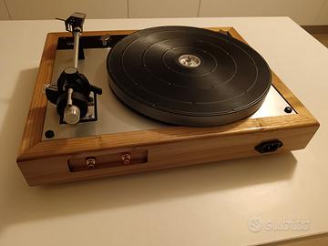 Come da titolo vendo questo magnifico Thorens 160 completamente restaurato e installato in un plinth in rovere massello dove spiccano le bellissime venature del legno. Oltre al lato prettamente estetico questo nuovo telaio contribuisce a dare spessore e profondità al suono. Sono stati poi installati dei connettori RCA sul lato posteriore che garantiscono una facile connessione all’impianto, ed una presa di rete moderna dotata di messa a terra. Giradischi in perfette condizioni, non presenta infatti nessun graffio o riga sul telaio. Serigrafie anch’esse perfette. Viene fornito assieme ad un’ottima testina Shure M75, con puntina non originale. Vendo a 700 euro con ritiro a mano o posso spedire con 20 euro. NB Data la natura dell’oggetto è comunque vivamente consigliato il ritiro di persona con eventuale prova di ascolto, mentre in caso di spedizione cercherò naturalmente di effettuare un imballaggio abbondante ed adeguato vista la fragilità ed il valore dell’oggetto.