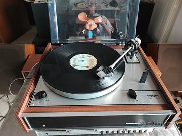 Giradischi manuale, monta testina Shure m 95 ed con puntina originale come nuova. Al momento monta connettore a norme din ( no rca) che si abbina a molti amplificatori europei come Philips e grundig, ma facilmente sostituibili in caso si avesse un amplificatore giapponese come ad esempio un technics. Si può vedere e provare al mio domicilio, valuto possibilità di spedizione.