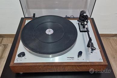 Giradischi Thorens TD166 MKII, plinto in castagno con rifinitura trasparente opaca, trattato internamente con pannelli smorzanti CTEK Premium per ridurre le vibrazioni.