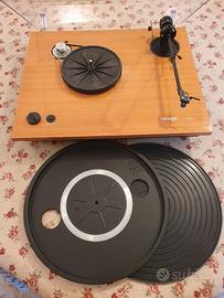 A corredo fornisco un contrappeso del braccio maggiorato per testine pesanti, una cinghia di trazione nuova (comunque quella montata funziona perfettamente). Dimensioni 435mm x 358mm × 145mm H peso: 8.5kg.